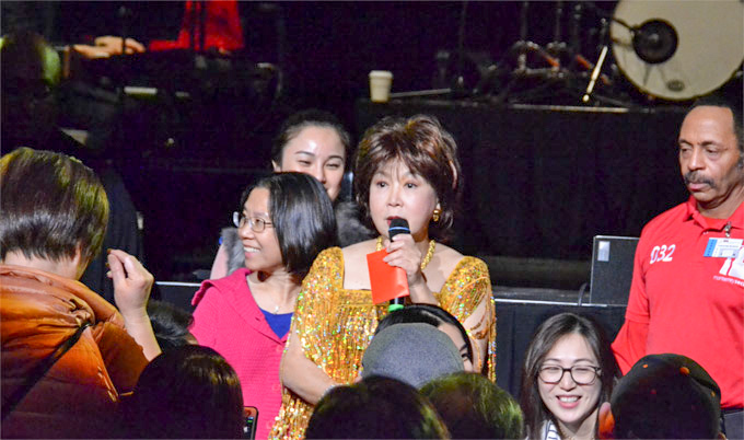 你也许不知道1970年代香港、新加坡的粤语小歌后朱咪咪,但你应该知道周星驰电影的“御用母亲”朱咪咪,比如《唐伯虎点秋香》幽默诙谐的唐母朱茜,就是朱咪咪饰演。延续星爷无厘头搞笑风格,朱咪咪的幽默风趣让本次演唱会欢笑满堂。金猪贺岁,朱咪咪从亮相到谢幕,从台上到台下,收粉丝们的新春红包无数。由于演出服装没有衣兜,朱咪咪直接以红包塞进胸间,曰“红包丰胸”,感觉好好。朱咪咪邀请老华侨上台,幽默的动作与逗笑的说辞,显示出歌坛、影坛的双栖实力,一个动作,一个眼神,都是喜剧演员的功底。