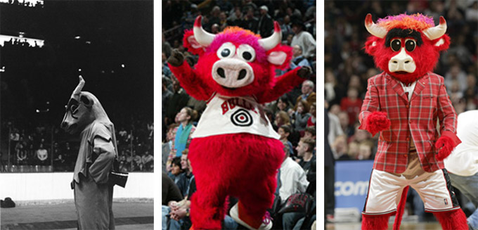 芝加哥公牛队组建于1966年,“本尼牛”则在1969年3月的赛事上首次登场,这是美国NBA职业篮球史上的第一个球队吉祥物。“本尼牛”之后,各大球队纷纷效仿,各种动物形象的吉祥物层出不穷。1970年代的“本尼牛”,画风是这样的。