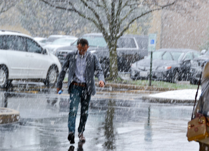 庆典当天,恰逢芝加哥罕见的四月雪