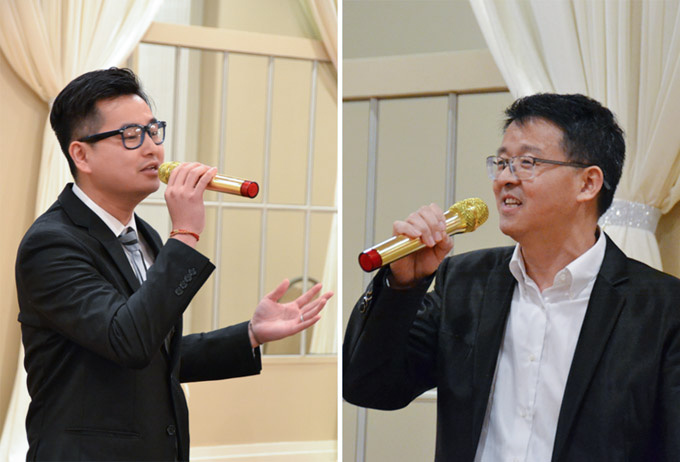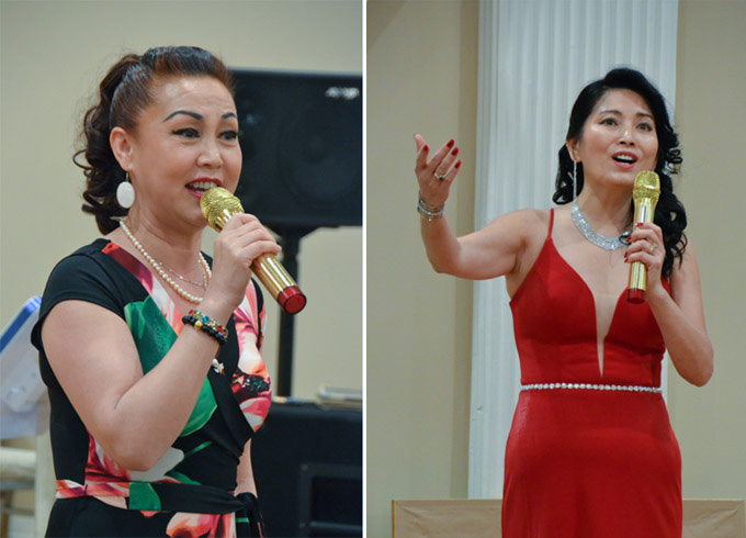 妇女商会理事王旭(左)、名誉会长于洪月(右)一展歌喉