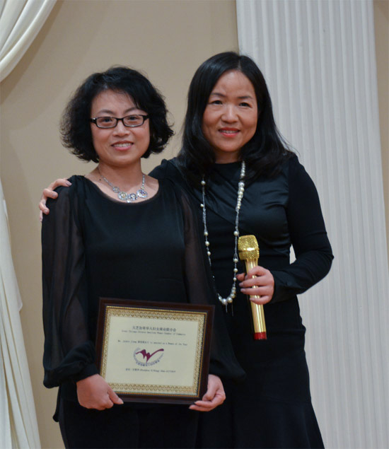 在年会上,大芝加哥地区纽约人寿伊州地区经理杨维女士获得商会颁发的“优秀职业女性奖”,一向为商会会务、社区公益热心奉献的则获得“最佳年度女性奖”。