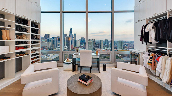 这套芝加哥市中心River North社区的豪华顶层公寓(Penthouse),居住使用面积4800平方英尺,还有1000平方英尺的私人户外空间,由著名设计师Kristy Yarbrough设计。
