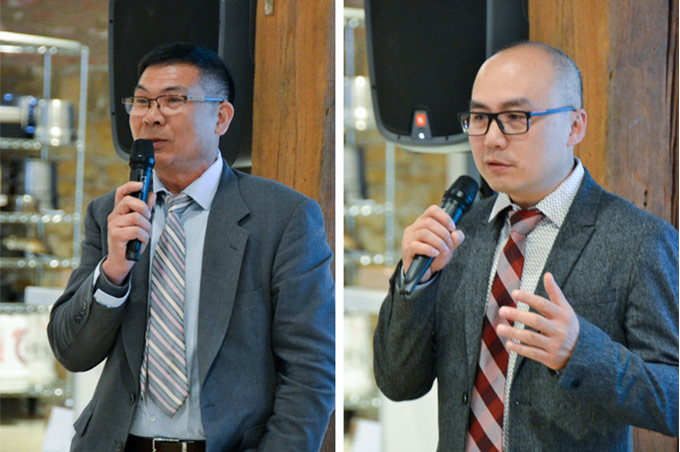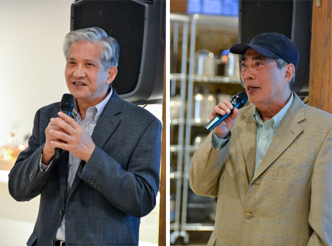 华埠商联主席马森柱(左)、两会会长方燕辉致辞