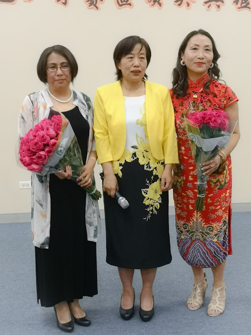 旅美科学家工程师专业人士协会理事长梁琨女士,指导老师徐彤,全美中文学校协会副会长展望