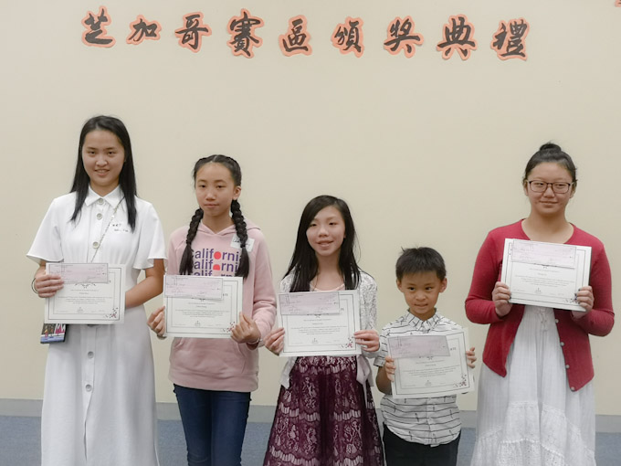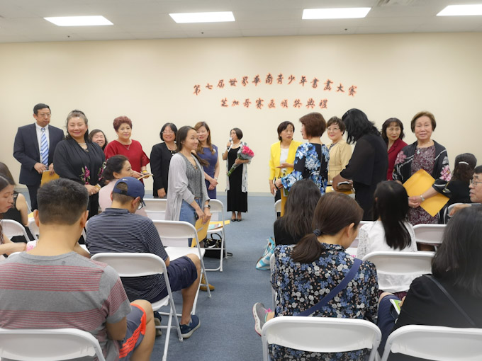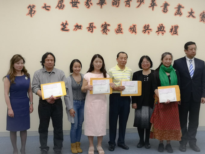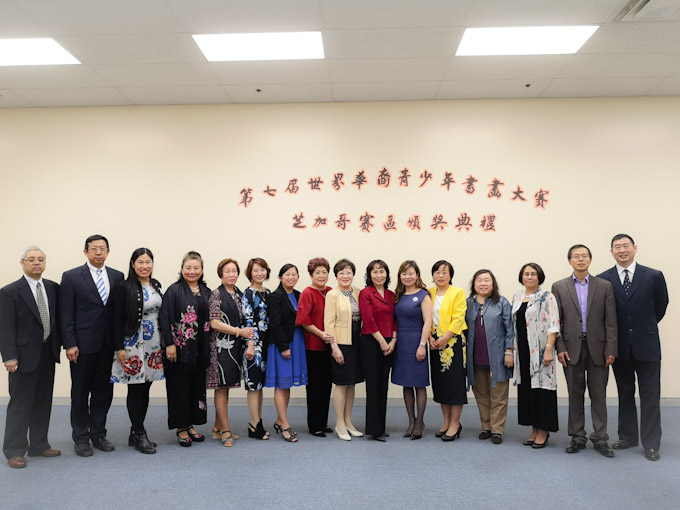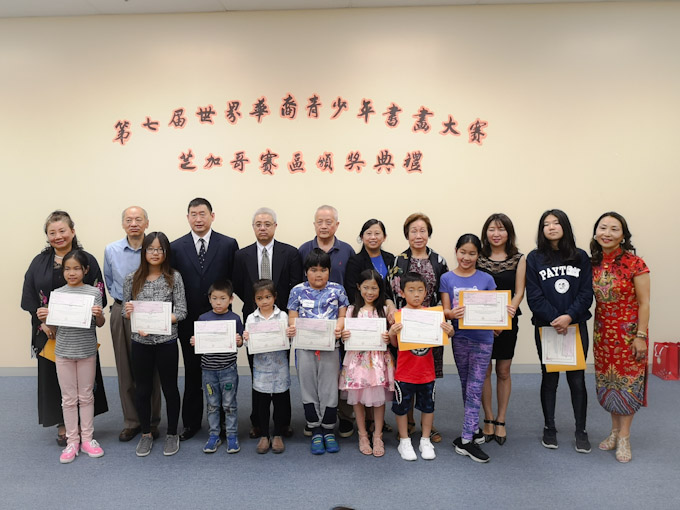 【芝加哥侨学网记者 王一 报道】5月18日下午,在西郊太古广场举办由芝北中文中心主办、芝加哥同源会与美中文化艺术中心协办的,芝加哥赛区第七届亲情中华.金水桥之恋——世界华裔青少年书画大赛颁奖典礼。出席本次颁奖典礼的嘉宾有大芝加哥地区华人华侨联合会主席郑征女士、旅美科学家工程师专业人士协会理事长梁琨女士、全美中文学校协会副会长展望、美亚健康主任刘红女士、CHICAGO EXPERT IMPORTERS总裁毕跃玲女士、达林集团总裁隋琳达女士、ADI MEDICAL总裁刘炯玲女士、芝加哥同源会主席IVY LAM女士、栋梁教育总裁、全美华人协会伊州分会副主席李韧女士等等。
