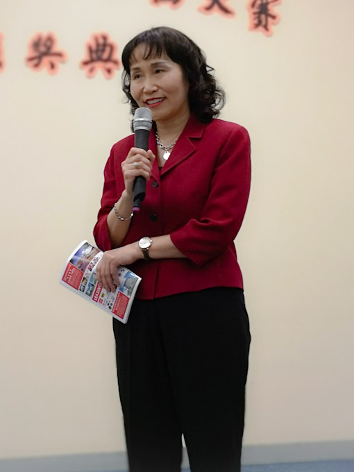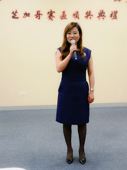 这次大赛的主持人是大芝加哥地区北京师范大学校友会副会长汪洪波女士。她是个中英文俱佳的主持人,她工作认真勤恳、热心公益事业,是一个特别靠得住的实力干将。她主持风格风趣幽默,给人耳目一新的感觉,使现场出现良好互动的气氛。