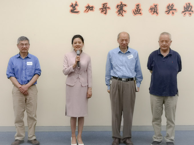 芝北中文中心孙彦钊校长是最后一个压轴发言的,他坦诚表示,这是他们第一次承办北京侨联举办的书画比赛,因此比较缺乏经验,在收集作品和把作品寄往北京过程中遇到了一些困难,但是最后都得到了顺利解决,他们非常感谢北京侨联赵勤女士的耐心和努力,致使这些参赛画作最后能够顺利通关,而不致于被海关退回芝加哥。