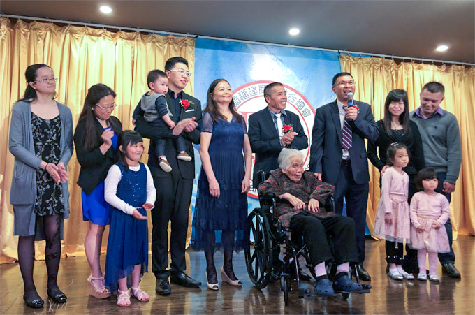 郑时坦会长向四世同堂的商会成员大家庭发敬老红包