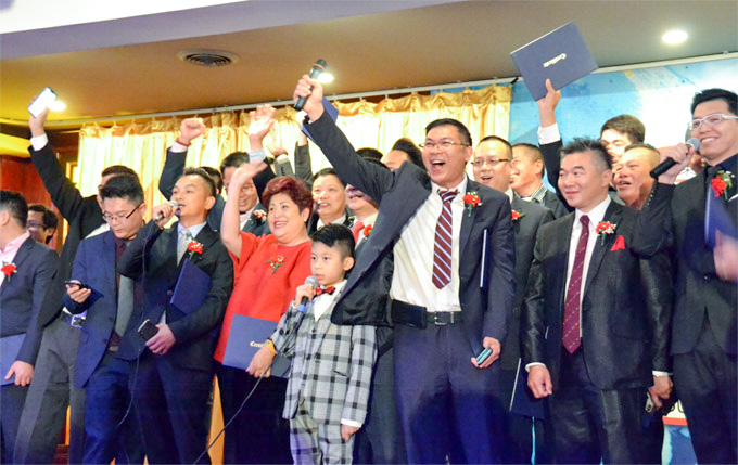 福建商会新届职员与总领馆嘉宾敬酒祝福