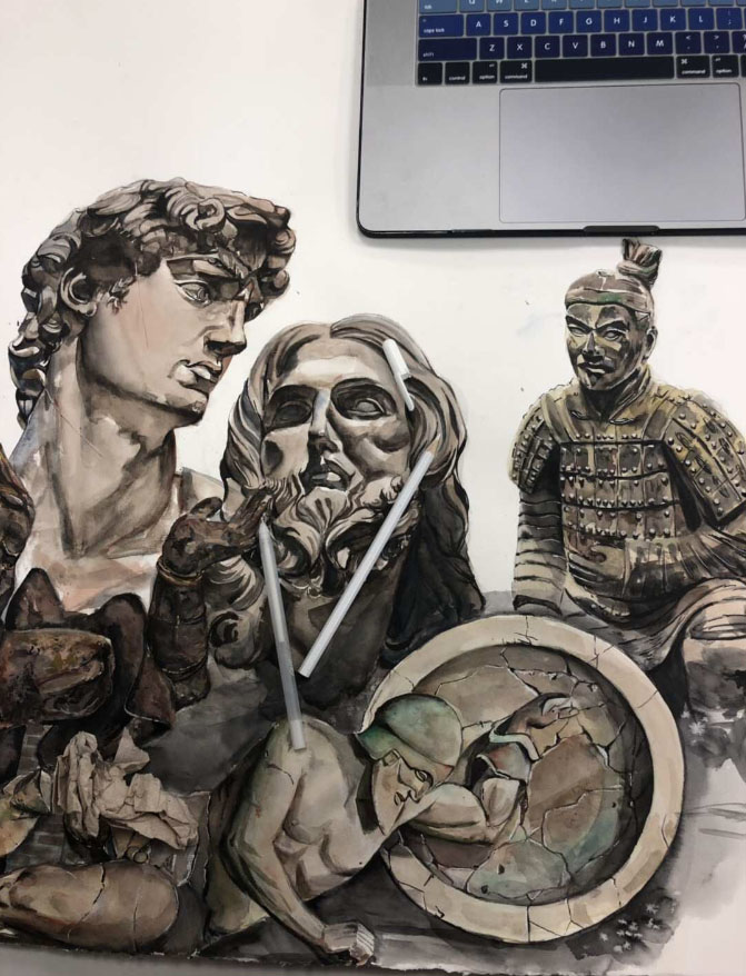 在芝加哥艺术高中,除了文化课、AP大学预科课程、SAT入学考试之外,她有更多的艺术课程安排,雕塑、油画、色彩艺术理论等,这些正是周余凌的兴趣之所在。她所在的高中凝聚一大批有艺术天赋的学生,还有来自俄罗斯、德国等世界各地的小留学生,不同文化背景的大熔炉,最多十几个人、最小仅两个学生的课堂,让学生之间,师生之间都有良好的交流与互动,在学习的艺术的同时,也形成了更广阔有趣的国际视野。