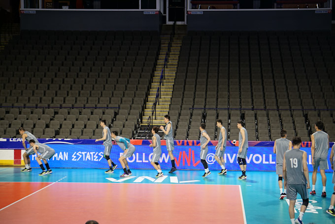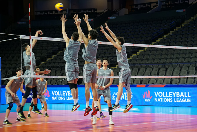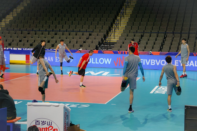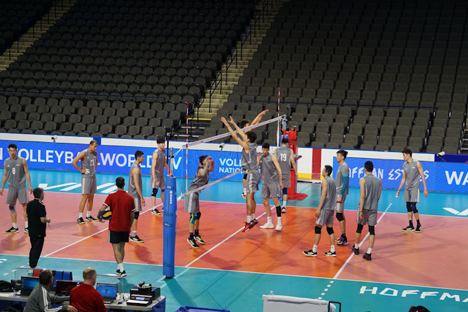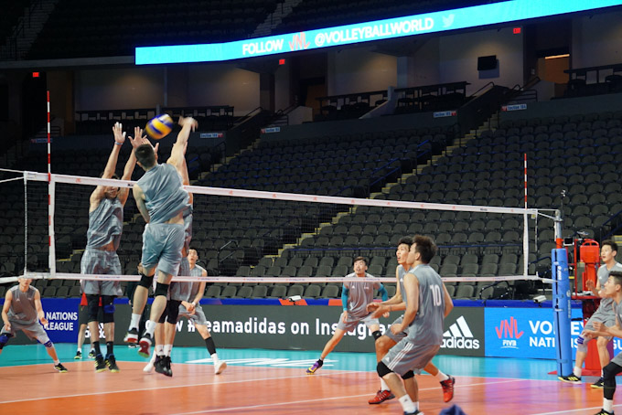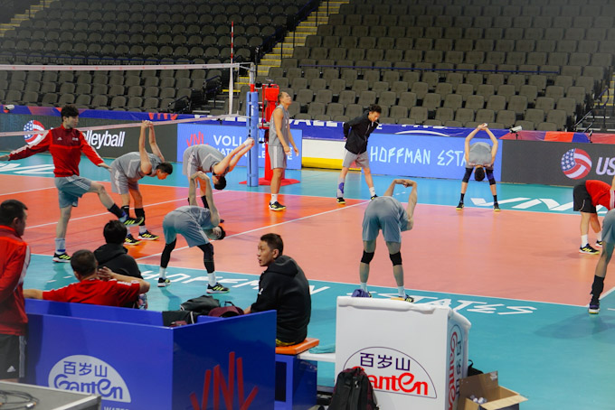 这次世界排球联赛落户美国芝加哥,共有16支队伍参加,包括核心球队:阿根廷、巴西、中国、法国、德国、伊朗、意大利、日本、波兰、俄罗斯、塞尔维亚、美国,以及挑战球队:澳大利亚、保加利亚、加拿大、葡萄牙。中国队在抵达芝加哥的第二天就调整状态开始训练,从体能训练到实战训练,整整两个小时,看到的是队员每个人的精神状态都很饱满,为了这次比赛,队员们一定做好了充分的准备。看到外教劳尔一直在场地上和队员讲解和纠正,看到队员们奋力的拼搏和挥洒的汗水,作为海外华人的我,眼里泛着泪水。
