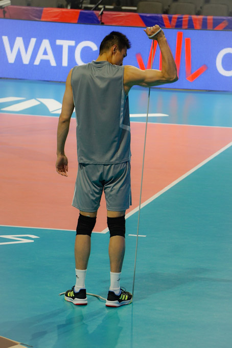 帅气的主攻队员刘立宾,在今天下午的训练中脚腕扭伤了,经过医护人员的包扎和治疗,十分钟之后,他又顽强的上场训练。“17号是你的幸运号吗?” “当时,给我发的就是这个号码,但是我挺喜欢的!”这小伙子好实诚啊!“ “作为参加过法国俱乐部和日本俱乐部的你来说,这两个国家的比赛和咱们中国队里,在训练和比赛上,有什么不一样的地方?” 他笑了一下,“日本和法国都很重视排球这项运动,俱乐部里面的高手也是非常多,大家可能都是从各个国家和地方来的,实力都很强。另外,比赛的时候,很多观众看,应该是非常喜欢这个体育项目了。在国家队里,我们每天都训练,教练也是很辛苦,大家都很努力!希望可以以最佳的发挥取得好成绩!”因为记者平常采访娱乐类的比较多,就问了几个题外话,“平常除了训练和比赛,你们有没有娱乐活动?比如唱歌之类的?” “很想啊,但是训练和比赛占据了我们所有的时间!” “听说你喜爱收藏球鞋?一共有多少双?是不是有这么一回事?” “你怎么知道?对呀,我喜欢收藏球鞋,大概有几十双,最爱的是乔丹鞋。”