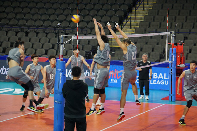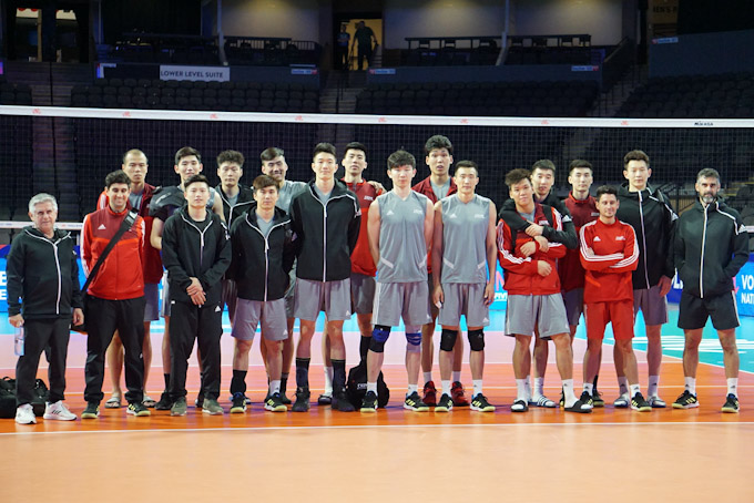 ears Centre Arena 训练 准备迎接比赛左一 中国男排教练Raul Lucio Lozano