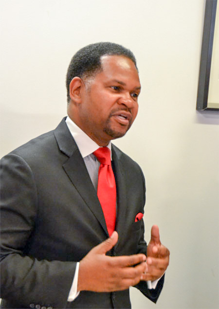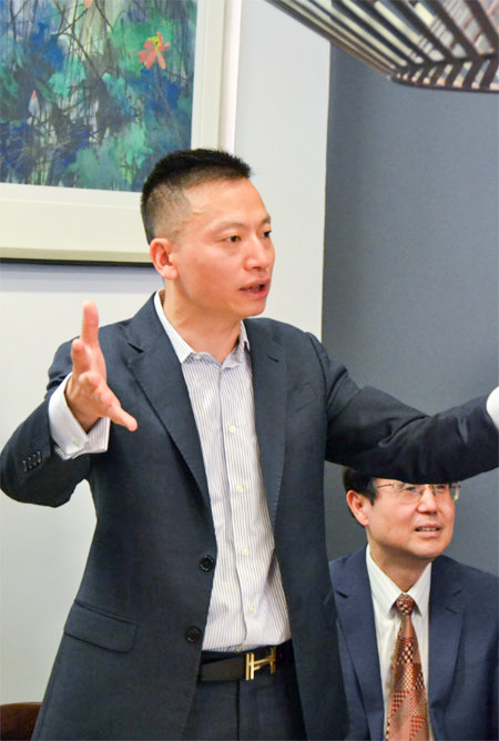 各界嘉宾莅临,左起:胡晓军、奥罗拉市理查德市长、新泰门窗总裁雷正明