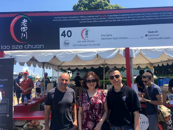 作为美国中餐学会的会员餐厅,老四川的这两样川味,登上了各大主流电视台采访报道的“芝加哥餐桌”,《芝加哥论坛报》还特别在美食专栏特别介绍老四川凉面。在为期五天的芝加哥美食节上,除了排队前来品尝正宗川味的各界民众外,伊州餐饮协会主席山姆托亚(Sam Toia)、芝加哥美食节负责人Mark、中国驻芝加哥总领事馆副总领事边志春等嘉宾均莅临老四川摊位,对美食节世界各地风味的多样性,对老四川弘扬中餐美食文化表示肯定。