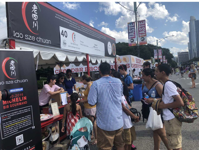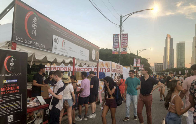 芝加哥是旅游之都、建筑之都,更是美食之都。一年一度的芝加哥美食节(Taste of Chicago)是世界上规模最大的户外美食节。据芝加哥市政府消息,2019芝加哥美食节共吸引100多万民众,创造1亿多美元的经济收益。在今年80家参与餐厅中,老四川作为亚洲美食的代表全程参与,不卖春卷、杂碎炒饭之类的美式中餐,把四川凉面、麻辣鸡腿这两样精挑细选的正宗川味推介给美食节的百万客流。