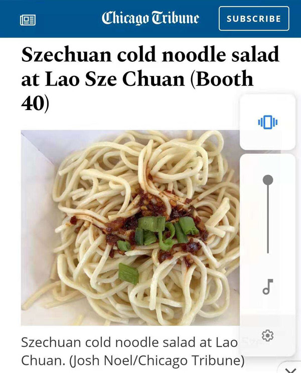《芝加哥论坛报》介绍芝加哥美食节上的老四川凉面