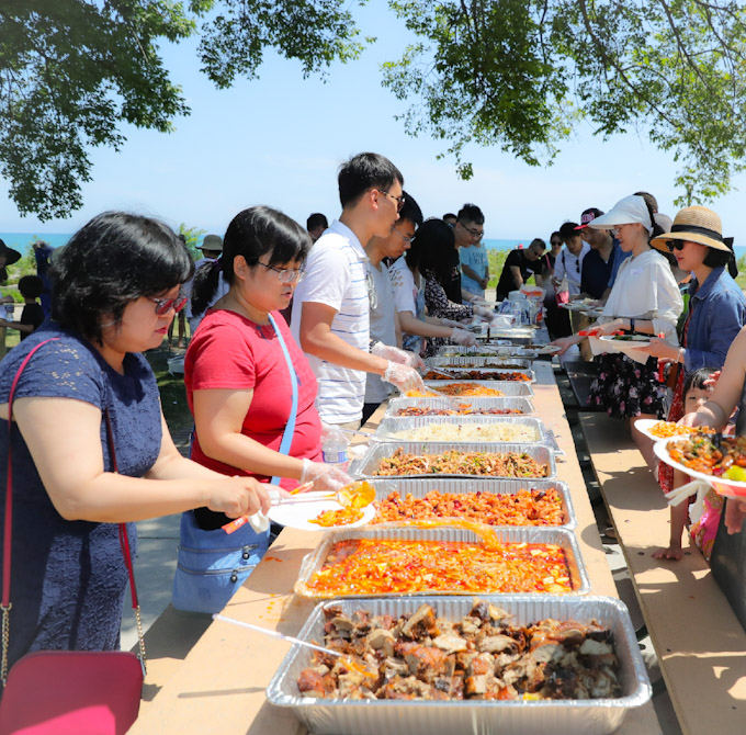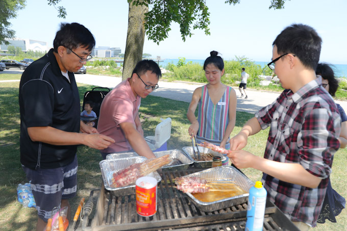 【芝加哥侨学网记者 王一报道】芝加哥四川大学芝加哥校友会, 吉林大学芝加哥校友会,中国农业大学芝加哥校友会,北京科技大学芝加哥校友会,芝加哥川渝同乡会8月4日在风景优美的密歇根湖边埃文斯顿举行户外烧烤野餐会。四所高校的校友们,以及大芝加哥地区川渝两地的老乡,吃着特色烤羊肉串、品尝地道美食,共叙校友情和乡情。