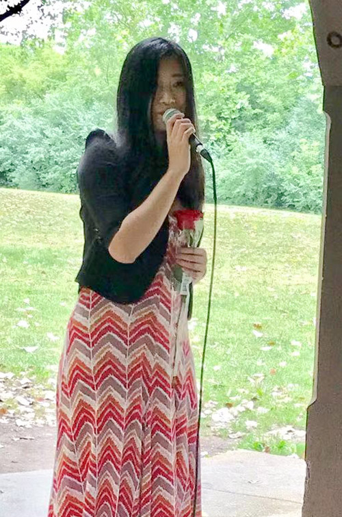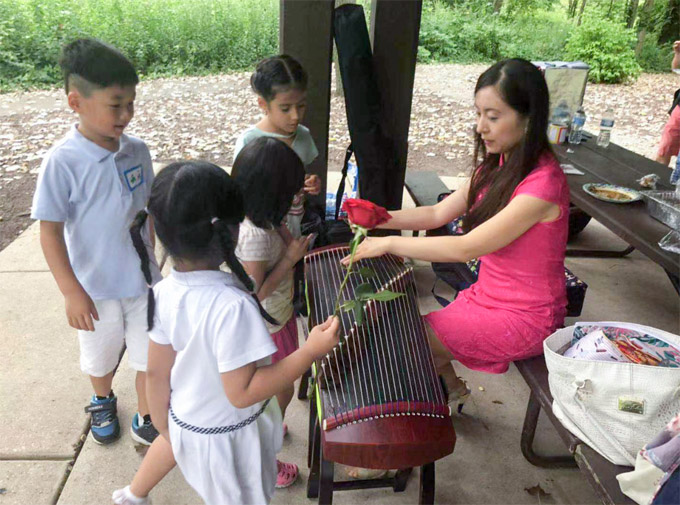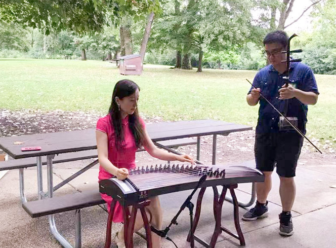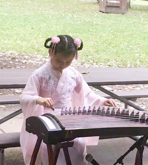 浙大校友张亦吉博士和表演嘉宾刘佳为大家演唱了《漂洋过海来看你》和《我只在乎你》,《站在高岗上》和《传奇》等歌曲,当熟悉的旋律响起,大家都沉浸在她们美妙的歌声里,就连在一旁打闹的小孩子,也不禁走上前去献花喝彩。西北大学博士生陈愫为我们带来了一段精彩的二胡演奏,“万马奔腾”。弦乐悠扬,有马蹄声,有嘶鸣声,惟妙惟肖。著名古筝老师关孟华女士带领八岁的小可爱萌萌同学登台献艺,悠悠琴声,扬扬弦音,东方传统乐器的演奏在山林间响起,连滴滴答答的雨滴也暂停了,身穿汉服的小艺人蹦蹦跳跳,孩子人欢声笑语,雨后的午后是那么美好。