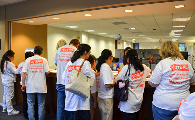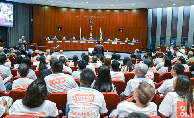 芝加哥侨学网报道】芝加哥西郊瑞柏市(Naperville)反对娱乐大麻店行动取得了重大胜利,瑞柏市议会9月3日以6票支持、3票反对的结果,禁止在瑞柏市辖区内开娱乐大麻销售店。募捐印制500件T恤,收集950多份签名,发动200多名华人市议会发声,瑞柏市华人在各族裔民众参与的反大麻店行动中,起到了“挑起大梁”的中流砥柱的作用,不仅创造了瑞柏市华人参政的新历史,而且创造了近年来瑞柏市民间参政行动新历史。