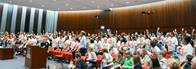 反对开娱乐大麻店的与会民众全体起立,在数量和气势上完全压倒支持大麻店的民众