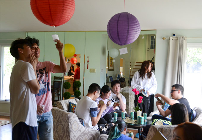 【芝加哥侨学网报道】9月13日中秋当天,在芝加哥各私立高中就读的30多位中国小留学生们相聚在栋梁之家,庆祝中秋佳节。剪灯笼、做月饼、猜灯谜,表演才艺,品尝地道中餐,小留学生与美国寄宿家庭的代表们欢度中国传统节日。对于小小年纪就离开父母的小留学生而言,栋梁之家的大家庭给这群远在异国他乡的孩子们家的温暖。