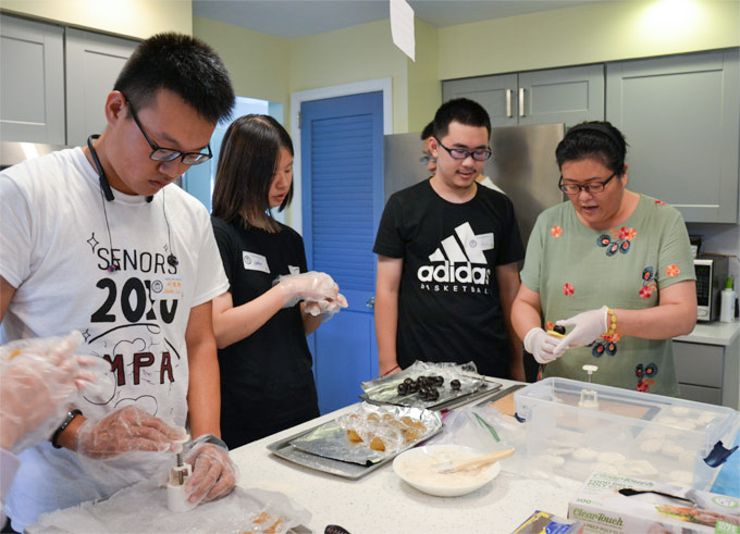 在当天的活动上,不少留学生还特别邀请美国寄宿家庭的家长们同来,一起做月饼、剪灯笼,体验中国文化。对于这群来自中国的孩子们,美国寄宿家庭的家长们评价如何?正在摩根公园私立高中就读的张瀚文来自苏州,在栋梁之家经过严格的审核与筛选之后,在芝加哥市比弗利社区(Beverly)找到了帕姆一家作为他的寄宿家庭。