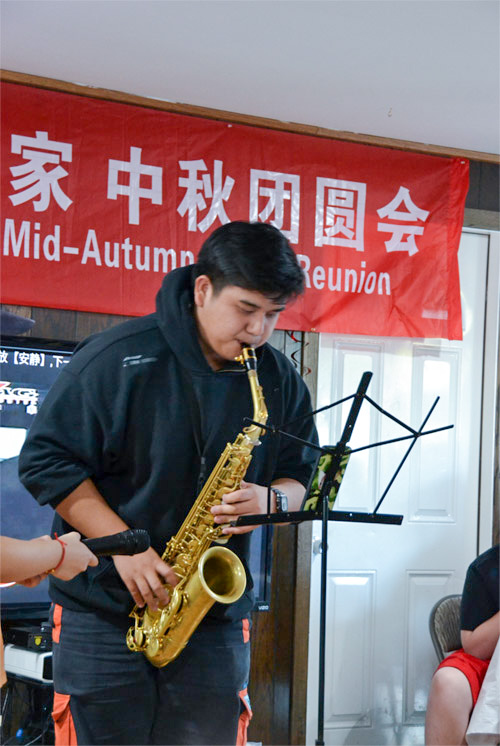为庆祝中秋,小留学生们还准备了唱歌、乐器演奏、猜灯谜等众多节目,让现场充满无拘无束的欢乐范围。在众多娱乐节目中,小留学生们把中秋灯谜这个传统内容演绎成英文版的脑筋急转弯,与寄宿家庭的美国家长们一起参与,寻找妙趣横生的答案。来自武汉的何润芃,在国内读完初一就来到芝加哥学习,目前是芝加哥艺术高中十年级学生。在中秋团圆会上,他用萨克斯为大家演奏《我和我的祖国》,为中秋助兴,也藉此为祖国国庆提前献礼。