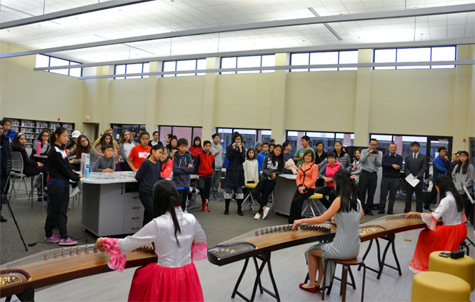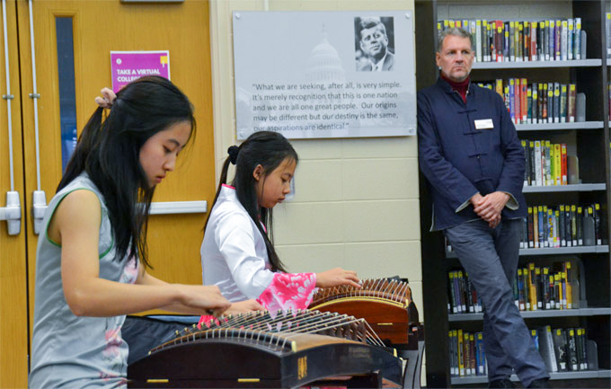 据悉,这些美国学生研读的都是《红楼梦》的英译版,他们的体会与见解,激发了瑞华中文学校与会华人家长们的浓厚兴趣,大家随后展开兴趣盎然的讨论。讲座结束后,三位华裔青少年现场为大家古筝演奏电影《红楼梦》专题曲《枉疑眉》,熟悉的旋律,悠扬的古筝,让各界来宾沉醉在中国古典文化的氛围中。