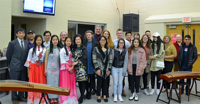 中北大学与会师生等主办方代表、古筝表演者们合影留念