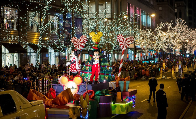 游行将由米老鼠米奇、米妮领军,还有众多来自佛罗里达迪斯尼乐园的卡通人物一一亮相。这是备受孩子们期待的游行。游行途中,米老鼠用神奇手指点亮沿途 200多棵大树上的百万个节日灯饰。