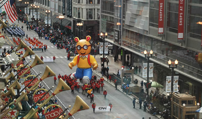 感恩节大游行,历年来都是芝加哥市最值得期待的活动之一。巨大的卡通气球、华丽的游行乐队、雄伟的马队、喜庆的花车、优秀的表演团队和名人们都将悉数登场。最后的重头戏当然少不了麦当劳叔叔和圣诞老人,他们的亮相将把现场气氛推向高潮。