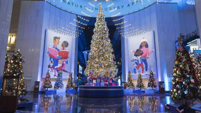 圣诞节是全球的节日传统,芝加哥科技工业博物馆将全球不同文化的圣诞树汇聚一堂,呈现世界圣诞彩灯博览会。博物馆高耸的圆形大厅将被一棵45英尺的巨型圣诞树占据,周围围绕着50多棵,来自全球不同文化的圣诞树和节日彩灯。