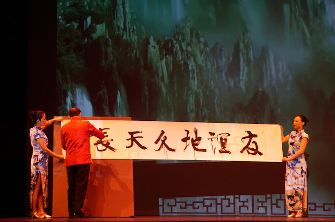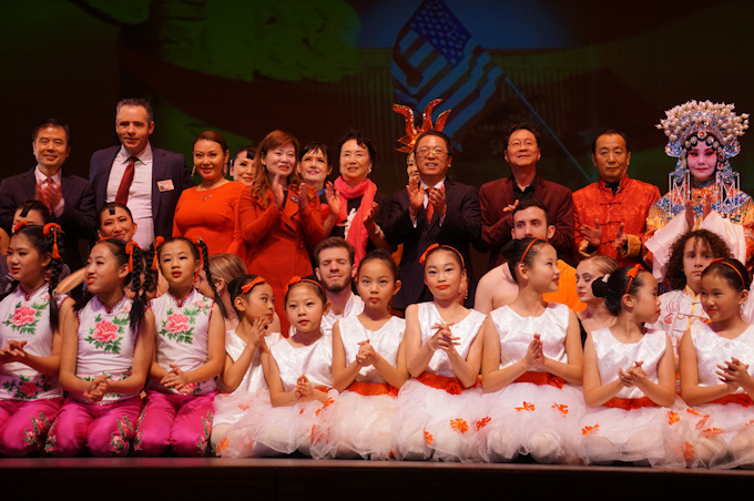 本次晚会的各色经典节目,不仅有浓郁民族风格、鲜明地域特色、强烈时代精神的少数民族民间舞蹈,最具震撼的是舞剧《永不消逝的电波》的经典片段,这支舞蹈让全场观众都为之沉醉。同时晚会还有各色少年儿童舞蹈精品以及美国Inspire舞蹈学校的芭蕾舞和现代舞。除了舞蹈之外,本场晚会还邀请了京剧表演艺术家关一,她为大家带来京剧《梨花颂》。书法家费建锋与美国小伙们的太极武术完美相结合,给观众带来不一样的视觉体验。美国小伙Zander Shaindlin演唱中国歌曲《东方之珠》,完美的中文发音让现场的观众掌声不断。值得一提的是:芝加哥民歌王子范青与美国姑娘Maggie Wilcox演唱的《我和你》,让我们的心连心,祖国和我们同在,中美友谊地久天长。