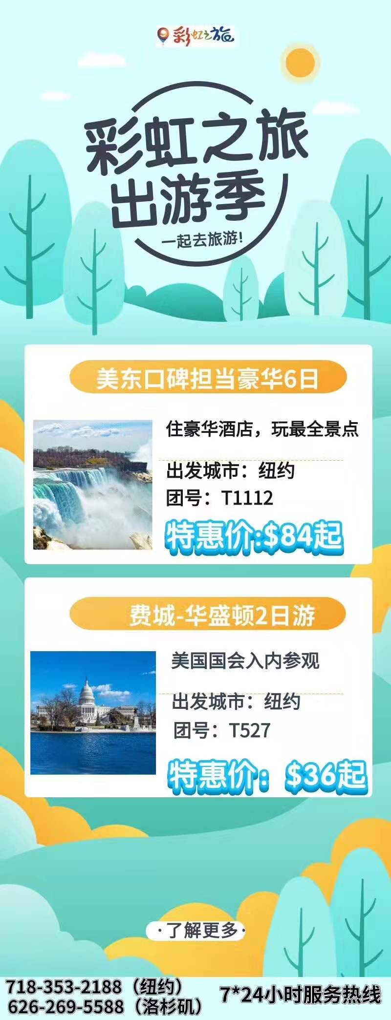 美东口碑担当豪华六日游,特惠价$84/人起!!