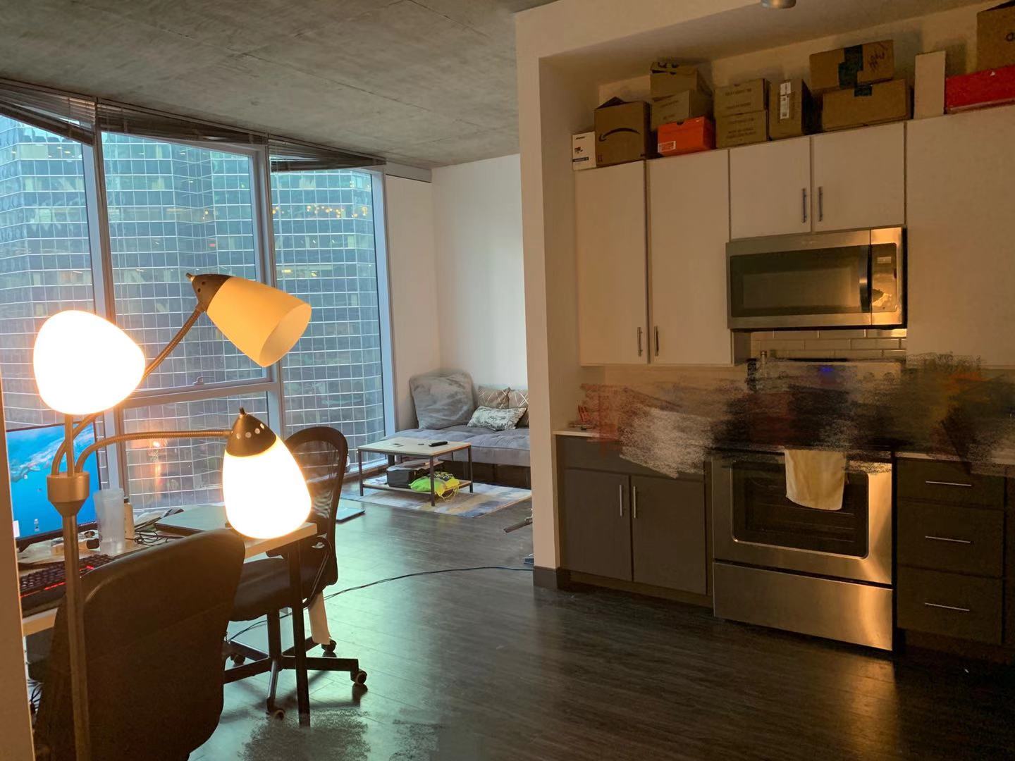 Luxury Apartment Linea超大1B1B 转租可转lease,位置位于215 West Lake Street,在downtown loop区。在13 层,全落地窗,开放式厨房,超大客厅,两个储物间和卧室内超大walk-in衣帽间,入住时间12月底到2020年8月,对于春季入学的学生和上班族都刚好,出门交通便利,楼下多线地铁直达。楼内带河景以及豪华City View。大楼附近就是便利店以及超市,和餐厅,步行2分钟可到达。楼内设施齐全,gym,lounge,泳池,dog spa 以及dog run一应俱全,房租$2545,额外加utility pacage$135,包水,网,空调(空调无限使用,没有额外价格)。当初在价格最合适的时候签的房子,户型和环境都属于附近最好的。欢迎有兴趣的人随时看房。联系人Nicole 手机号:3476106234