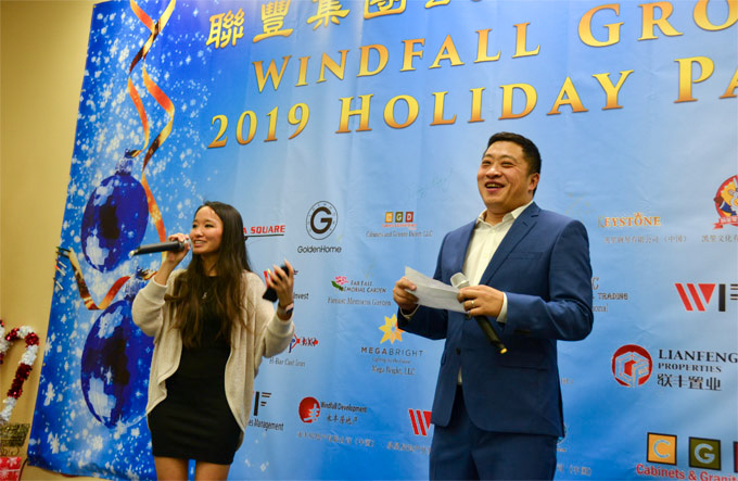 联丰集团董事长倪举凌代表集团全体员工对各界来宾的到来表示热烈欢迎,感谢股东及合作伙伴一年以来的信任与精诚合作,感谢社会各界的支持,并向来宾们介绍了联丰集团(WINDFALL Group)的概况。联丰集团(WINDFALL Group)是一家成立十多年的大型华裔企业,主要从事地产开发、建材进出口、投资等方面业务。联丰集团在全美各地和中国大陆均拥有众多成功地产项目。
