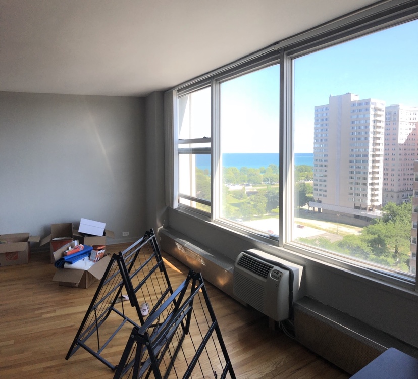 因工作原因转租Sheridan Hollywood Tower 14 楼 观湖水景安静阳光充足Studio apt. 位于edgewater, 5650 N Sheridan Rd. 300米步行至红线 Bryn Mawr站。车行四分钟至wholefoods, Loyola 大学,八分钟Target。周边有很多步行可到达特色美食餐厅。 顶楼天台有健身休闲公共区域, 有健身房洗衣房, 车库。可狗养猫, policy开放。 前台有24小时保安服务。保安人员非常友善并且帮助拿包裹到家。小区保修非常及时立刻修好。三分钟步行至Foster beach 沙滩公园。大面窗户。可转租于一月底(时间可商量), 1254包括水费和物业, 以及电视网络。 价格可刀。 欢迎咨询7203176291看房