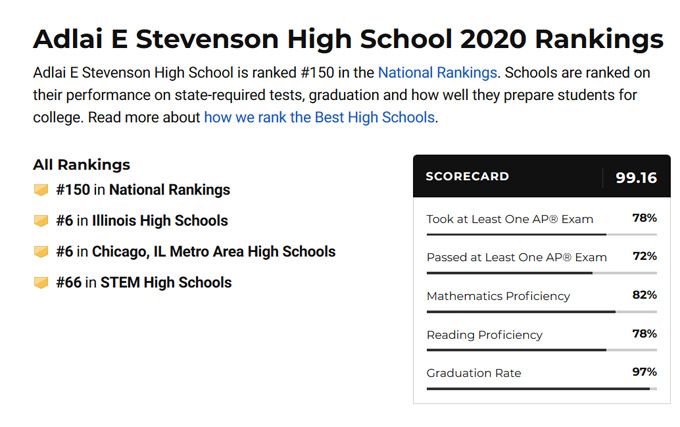 《美国新闻与世界报道》2020全美公立高中排名,对史蒂文森高中给予了高度评价