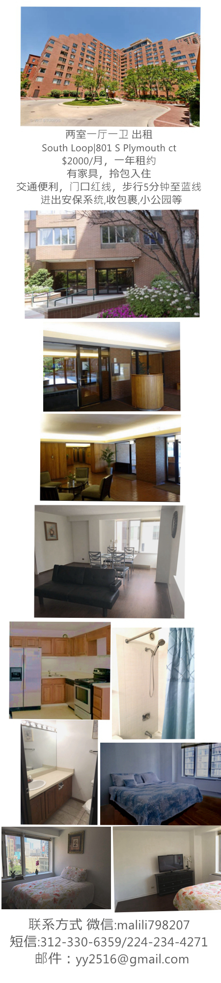 两室一大厅一卫,South loop黄金地段, 拎包入住无忧公寓