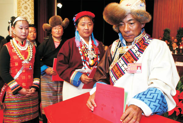 西藏自治区全国人大代表在投票
