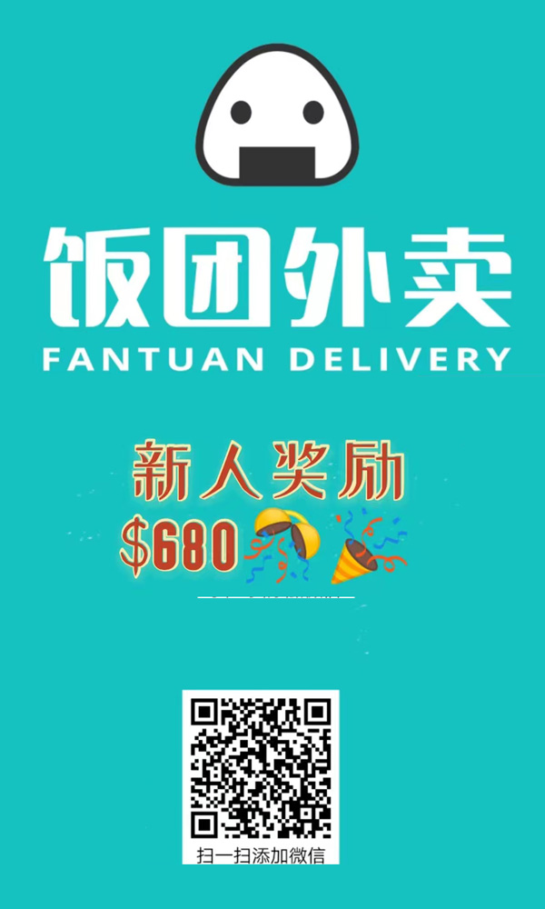 » 饭团外卖招送餐员,出门就赚钱,入职奖金$680