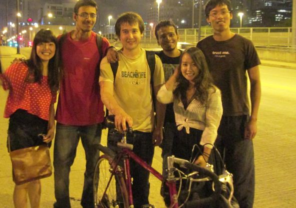夜晚芝加哥灯光下的合影(4个国家的人哦)