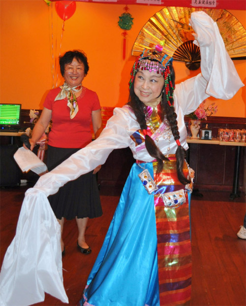 特别值得指出的是,汪妈妈俱乐部负责人沈如霞女士,在华裔社区人缘颇佳,一向被大家亲切称为“汪妈妈”。在当天的活动中,汪妈妈以83岁的高龄,粉墨登场,为大家跳起中国民族舞,赢得在场阵阵掌声。拥有插花、京剧演唱等多项才艺的汪妈妈表示,她很高兴能为社区做点事情,也希望更多老人家们能为社区发挥余热。汪妈妈多年来热心社区公益,担任松年中心执委会名誉主席,赞助社区敬老活动,最近汪妈妈还应邀担任任慈爱医院(Mercy Hospital)义工,将从九月份开始为慈爱医院的病房免费制作鲜花。(图文:
