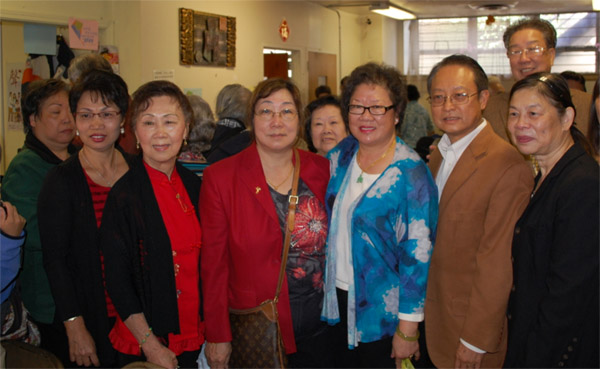 华侨妇女会姐妹们在中华会馆老人餐厅合影,前排右一为陆张意颜会长,前排右二为徐学明主席