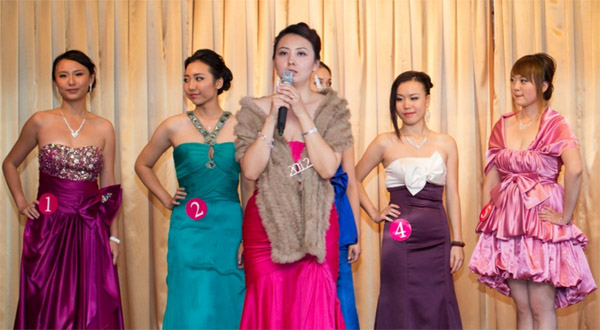 本届选美大赛总策划兼主持人 Jane Wang (前)