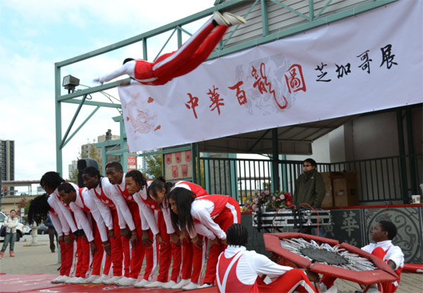 《中华百龙图》芝加哥展出活动,处10月27日至29日的展出外,还将从11月3日至11月5日(每天上午10时—下午5时)于芝城南华埠广场展出。 (图文: