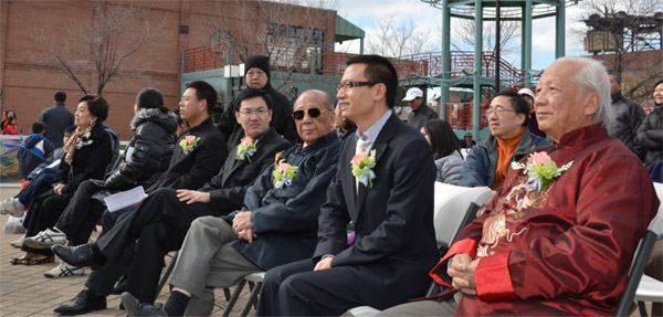 美中华联永远会长梅国炘,二十一世纪中美有限公司总裁李建明,芝加哥中文学校校长徐婕雯,华咨处送年中心副主席邓衍辉,以及华联会主席胡晓军,汪妈妈俱乐部负责人沈如霞女士等嘉宾,出席了当日的开幕仪式。