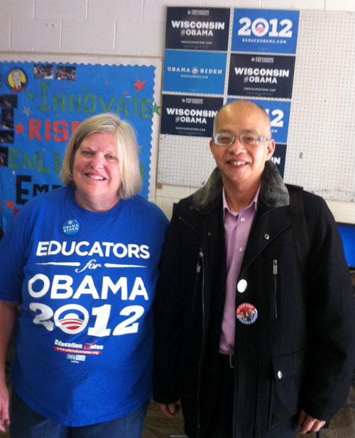 今年总统选举的大局,还包括佛州、威斯康辛、爱荷华三大“决胜州”,这三个州的选票取向将对11月6日选举结果起着决定性的影响。威斯康辛州历来是共和党的票仓,上周末马森柱随同奥巴马阵营芝加哥竞选办公室的50多名义工团队,北上威斯康辛密沃基市,也即是共和党副總統選人萊恩的家乡,挨家挨户登门拜访,传达奥巴马在经济、健康保险、教育等方面的竞选纲领,为奥巴马争取选民。