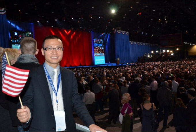 华联会主席胡晓军参加大选夜盛大集会,并聆听了奥巴马总统的胜选演讲